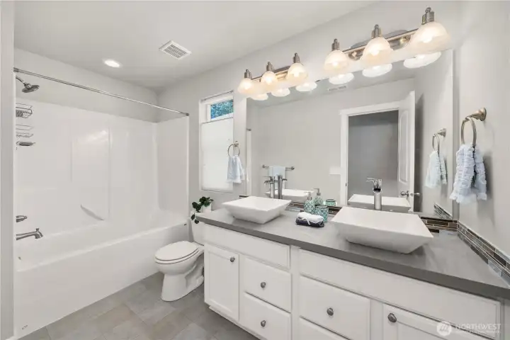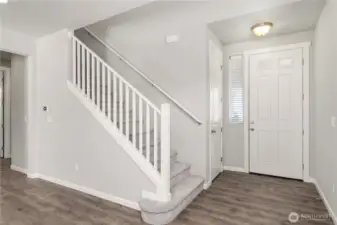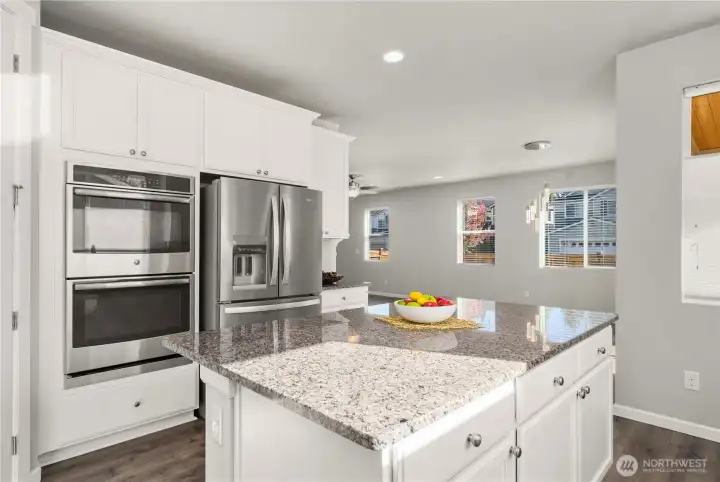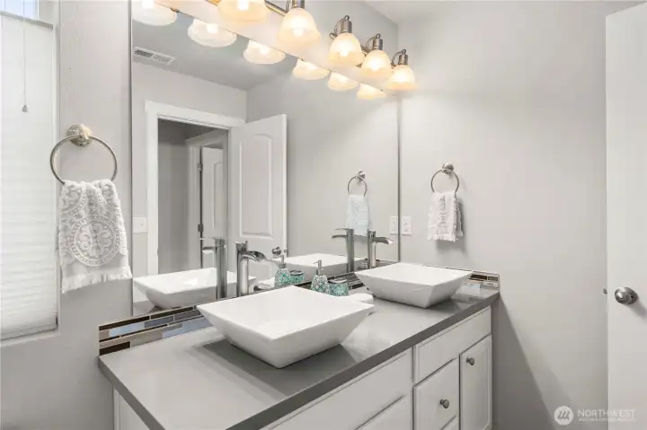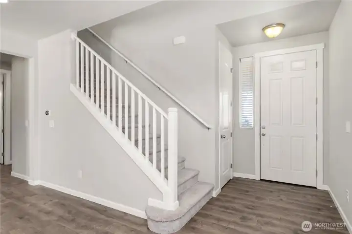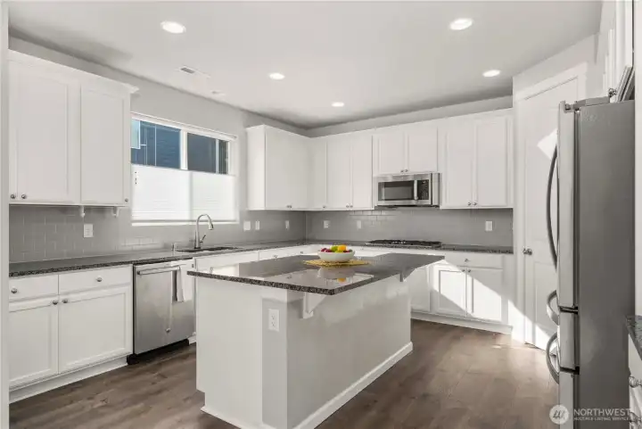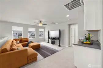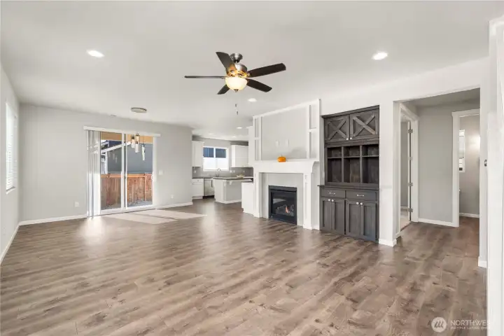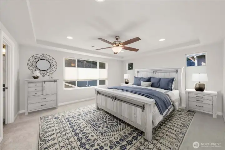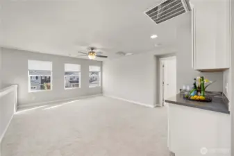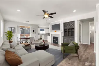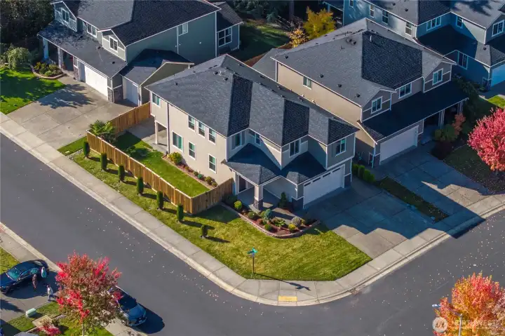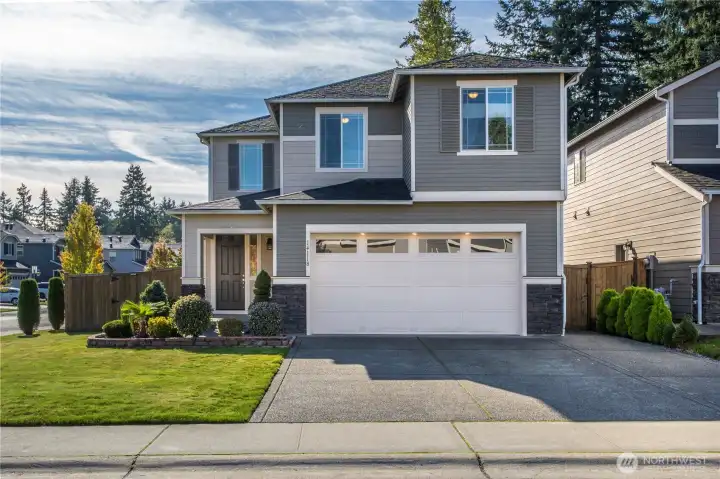 Better than new! Well-maintained 4bedroom, office, 2.5bath, 2,379 sqft home offers comfort, space & modern style. The main floor features a spacious great room w/built-in cabinets & shelving, open dining area & quiet study. The inviting kitchen includes a large island, stainless appliances & double ovens.Upstairs offers a generous loft, laundry room, relaxing primary suite & three additional bedrooms.Recent upgrades: stylish lighting, 3 ceiling fans, 2bathroom updating ,A/C installation, extended back patio, added sidewalk,fence & expanded parking.8ft doors on main level, gas stub at patio & extra-tall 2-car garage door.Located on a large corner cul-de-sac lot near parks, playground & walking trails.Close to Hwy 512 and JBLM. Move-in ready!