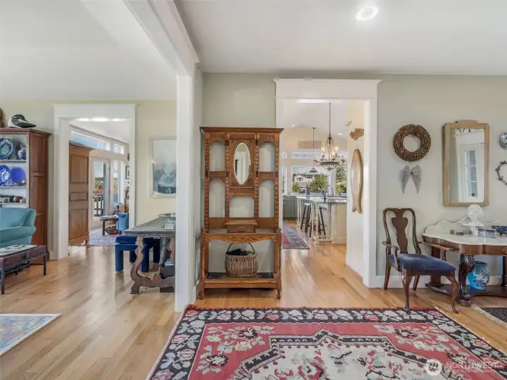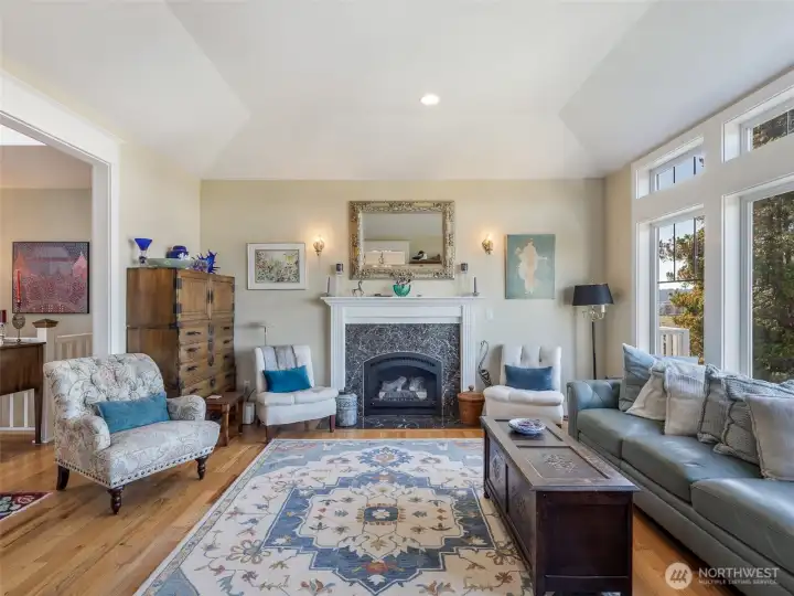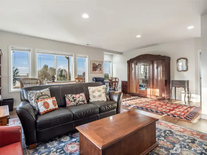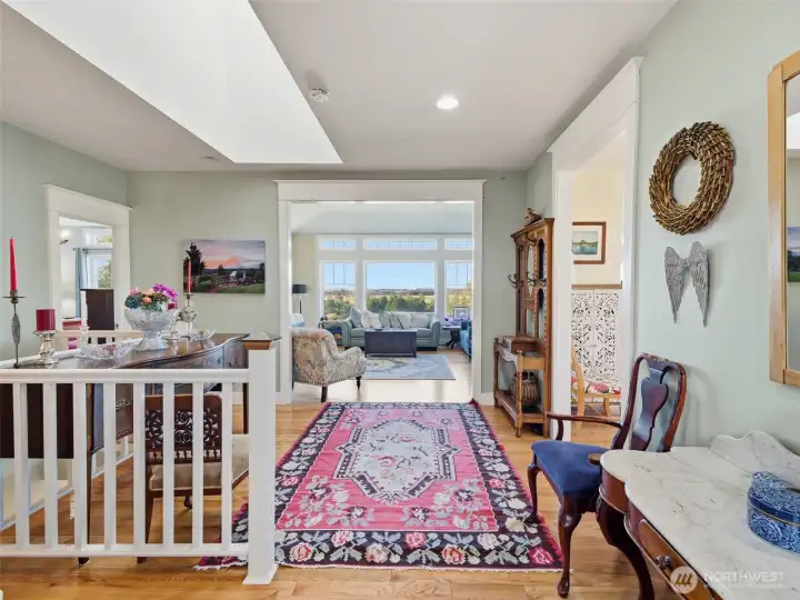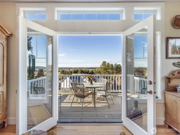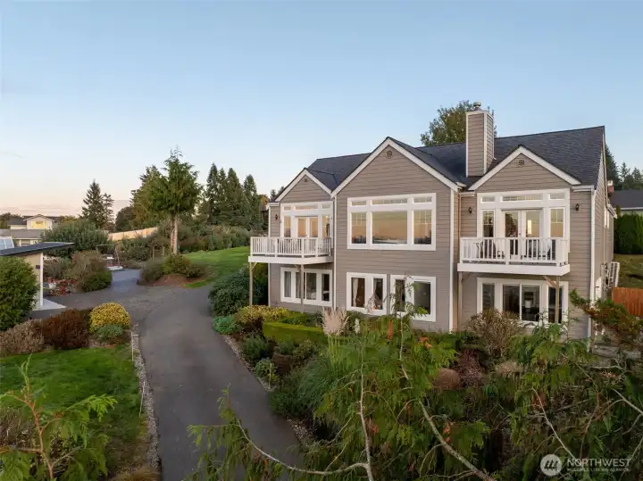 Perched on a serene ½ acre with sweeping views of Snohomish Valley and Mt. Baker, this Nantucket-inspired home welcomes you with timeless charm and light-filled spaces. Inside, pine and hardwood floors, 9 ft ceilings, and an open layout connect the living, dining, and family rooms around a cozy fireplace. The chef’s kitchen offers ample counter space, an eating bar, and picture windows framing the lush grounds. The main-floor primary suite provides comfort and privacy, with a second bedroom and powder room nearby. Downstairs, find two more bedrooms, a full bath, rec room, and office. Outside, enjoy gardens, fruit trees, and a gazebo retreat.