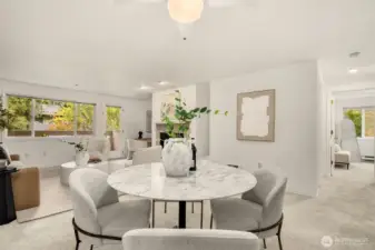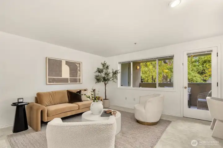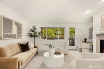 Lakeside living opposite Juanita Beach Park on Lake Washington’s shores! Bright 2 bed, 1.75 bath corner unit features a spacious great room design with cozy wood-burning fireplace flowing to a large covered balcony. Modern kitchen with new stainless steel appliances, ample storage, and breakfast bar. Primary suite with en-suite bath, generous closets, and private balcony access. In-unit laundry and storage. Fresh carpet and paint. Savor serene tree and creek views from your tranquil balcony. Stroll to swimming, fishing, tennis, or Friday Market’s fresh produce and unique crafts. Vibrant Juanita Village offers craft coffee, dining, shops and conveniences. Minutes to tech hubs and I-405. No rental cap. Move-in ready, welcome home!