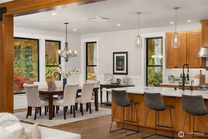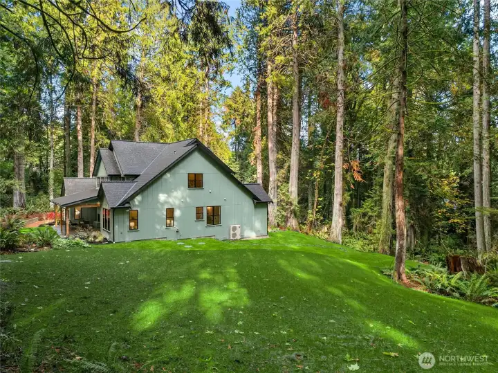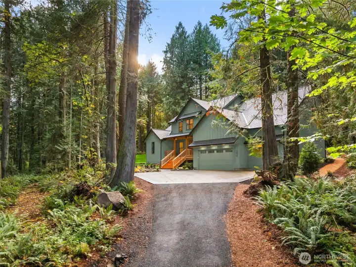 Tucked away on 2.5 acres & surrounded by lush forest & old-growth trees, this newly built home offers modern comfort with total privacy & tranquility. Anchoring the open concept floorplan is a dramatic 2-story living room with French doors leading to a covered patio with a dual-sided fireplace. Chef's kitchen with Thermador appliances, walk-in pantry & large island. Large main-floor primary suite with a luxurious spa-like bath & large walk-in closet with island. Upstairs, 2 en-suite bedrooms, a bonus/media room with wet bar (or 4th bedroom) & a large laundry room. Office, mudroom & a large, fully finished 3-car garage with EV wiring. Built to the latest Energy Code for max efficiency! Minutes to Bloedel, nearby trails & public beach access.