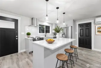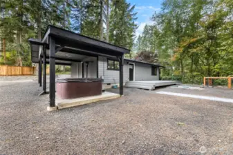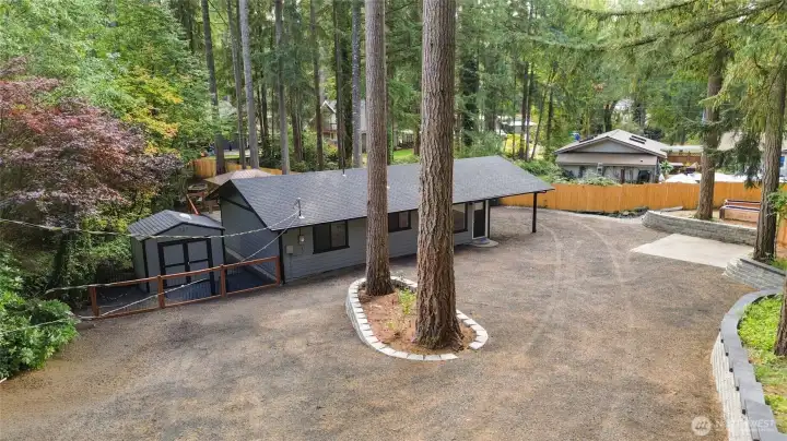 Welcome to Holiday Lake in Gig Harbor and this dreamy, private, 1/3 acre property. This COMPETELY updated 2BR/1.75 BA Rambler is A true showcase of high-end design and craftsmanship. BRAND NEW Roof, LVP Flooring, Kitchen Cabinets/soft close, Quarts counters/Back Splash, Appliances, WD combo, Convection oven, Micro, Fridge, entertaining island. Mini Split, FP, Windows, Doors, Siding, Int/ext paint. The primary suite offers a spa-like 5-piece bath with soaking, jetted tub, dbl sinks, barn style closets. Professionally landscaped with Trex deck, extensive brick project, shed, all new fencing, gazebo, sprinkler, drip, fruit trees, hot tub, rv parking. Play area. All tucked away in a quiet setting close to the lake.