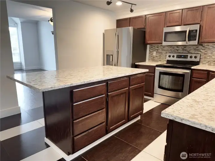 Willow Park home perfectly tucked away on cul-de-sac! Breathtaking vaulted ceilings greet you upon entrance! Heated tile floor in entry & kitchen. Open & spacious floor plan with 4 bedrooms, formal Living Room, Dining Area & Family Room w/gas fireplace! Updated kitchen boasts SS appliances, large island, quartz countertops & tile backsplash & walk-in pantry. Updated bathrooms with beautiful tile in bath/shower, & modern hardware. Large Primary suite with vaulted ceilings, WIC, & heated tile floor. Entertain or relax on huge covered deck! Newer furnace & A/C! Great location near Green River Community College & quick access to HWY 18!