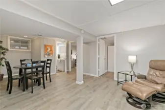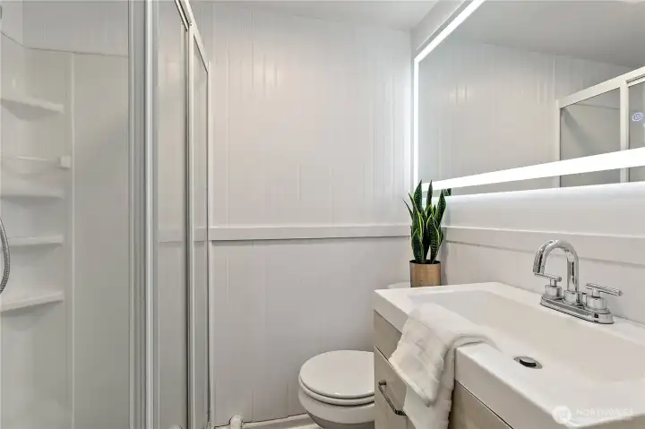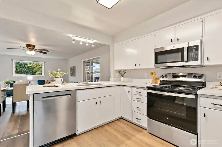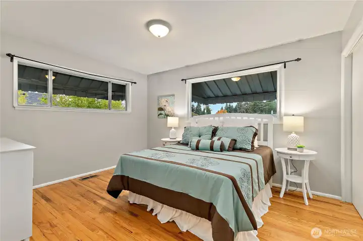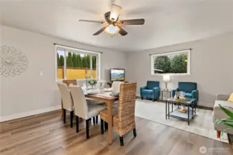 Stylishly updated from top to bottom, this spacious North Tacoma rambler offers 2,688 sq ft of comfortable living in a sought-after neighborhood. Enjoy peace of mind with new flooring, paint, lighting, electrical, and plumbing throughout. The main level showcases hardwood floors, a bright living room with fireplace, and an updated kitchen with new stainless appliances and countertops. A cozy family room opens to a covered deck, ideal for entertaining. Downstairs features two bedrooms, a large bonus room with fireplace, modern ¾ bath with smart mirror, and utility room. Fully fenced yard with patio, shed, and covered deck. Close to Proctor, 6th Ave, UPS, and Met Market.