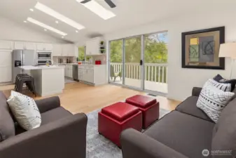 Exceptional 4-bed, 2.5-bath home featuring a remodeled interior & a fully permitted 2-bed, 1-bath accessory dwelling unit (ADU)! A rare opportunity in Newport Hills. Main residence showcases brand-new appliances, updated surfaces, elegant lighting, & stylish finishes throughout. Gourmet kitchen includes an island bar & sun-filled, west-facing breakfast nook w/ skylights—abundant natural light all day long. A 610 sq. ft. wraparound deck, seamlessly accessible from every main-floor room. Downstairs, the fully permitted ADU offers a private 2-bedroom, 1-bath suite complete with full kitchen & generous living area. Perfect for extended living, guests, or rental income. Central A/C, whole home generator & NEMA 14-50 plug for Level 2 EV charging!