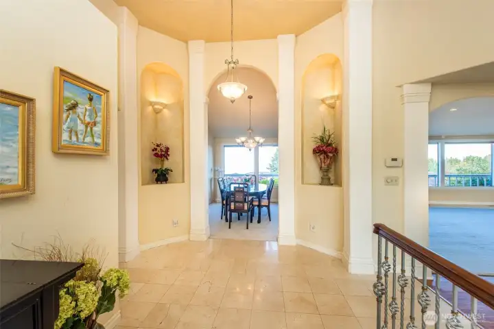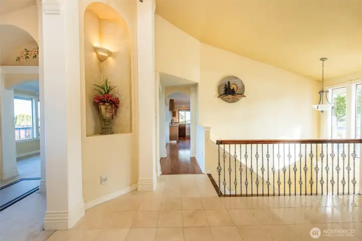 Stunning 3-bed, 3-bath home in the desirable Cresthaven neighborhood with the best strait and mountain views! Elegant circular drive and custom porch with water feature welcome you in. Main floor boasts graceful arches, columns, custom lighting, propane fireplace and designer paint. The primary suite stuns with a jetted tub, walk-in shower, marble tile, and stackable washer/dryer in the walk-in closet. Enjoy a livable floorplan, generous family room, 2-car garage, expansive deck, and fenced backyard. Meticulously maintained and perfect for entertaining—this is elegant living at its finest!
