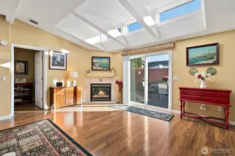 Welcome to sought-after Wilderness Villa, a vibrant 55+ community! This beautifully maintained 3-bed, 2-bath home offers comfort, style, and convenience just steps from the clubhouse and amenities. The spacious living area features vaulted ceilings, skylights, and a cozy gas fireplace that fills the home with warmth and natural light. The bright kitchen boasts newer SS appliances, abundant cabinetry, and plenty of counter space. Relax or entertain on the private, low-maintenance backyard deck surrounded by easy-care landscaping. The primary suite includes a walk-in tub and separate shower for added comfort. Additional highlights include a full laundry room, two-car garage, and prime location near shopping, dining, and medical services.