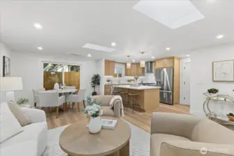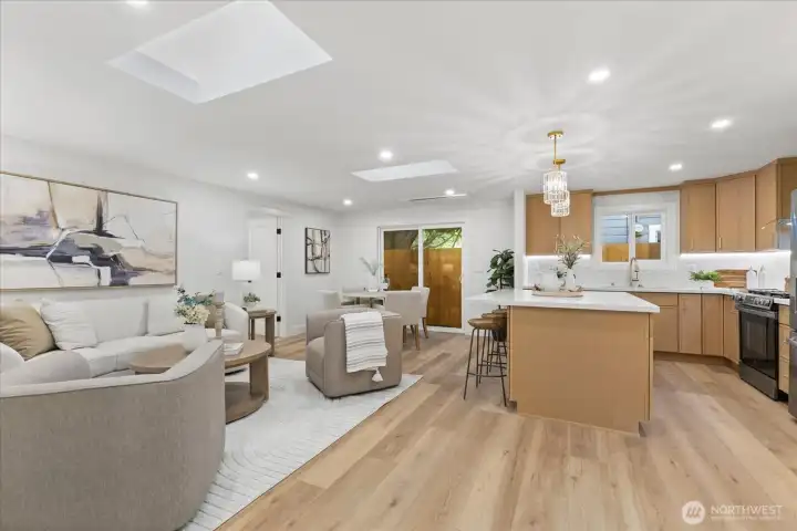 Incredibly unique opportunity to live across from 560 acres of trails, beaches & views at Discovery Park! This turnkey 3bd/2ba home has been completely renovated down to the studs. Peace of mind with all new electrical, plumbing, roof, smart water heater & Mitsubishi heat+AC in every room. Inside, luxury finishes include quartz countertops, GE appliances, heated tile floors, & ambient lighting create a refined yet inviting atmosphere. Outside, unwind in your backyard on the 260 ft² TimberTech deck, built to last 30+ years, or enjoy the newly fenced front yard. Park effortlessly in the garage & savor the tranquility of this quiet Magnolia neighborhood. Modern comfort meets timeless charm—this stylish 1-story home could be your new sanctuary!