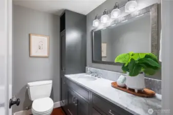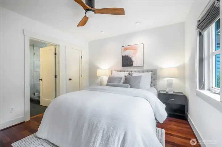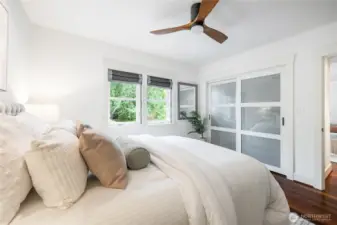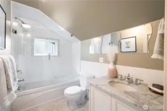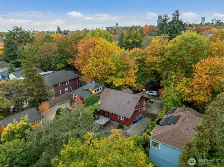 Craftsman Classic on a tree-lined street. The exterior is true to its roots, while the interior has been fully renovated with new plumbing and electrical for modern living. Walls have been opened and doorways widened to create an open, functional layout. The main floor features a fireplace, TV room off the kitchen, half-bath, and a Primary Bedroom with en-suite bath. Upstairs offers two bedrooms and a full bath. Tons of storage in the unfinished basement. Prime location just blocks from main arterials, shops, and award-winning restaurants. A Walkscore of 88 means you may spend little time in your car. The 6,400 sq ft lot includes a custom patio, garden space, multi-car parking, and a garage. Welcome home!