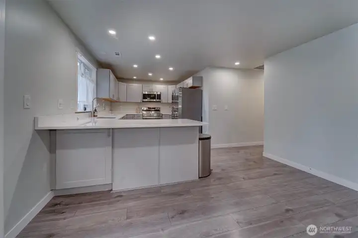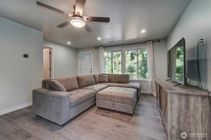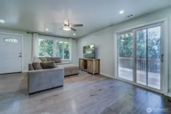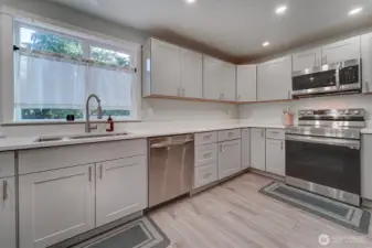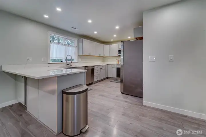 Beautifully renovated one-story home on a spacious half-acre lot! Completely remodeled in 2023 with all-new windows, wide-plank flooring, kitchen cabinets, quartz countertops, stainless steel appliances, lighting, plumbing fixtures, roof, and both interior and exterior paint. Efficient new heat pump for year-round comfort. The open floor plan features a generous kitchen, inviting living area, and a primary bedroom with an adjoining bath. Step out to the expansive 12x24 cedar deckâperfect for outdoor entertaining or relaxing in privacy. Enjoy the ideal blend of tranquility and convenience, just minutes to town and freeways. Walk to Silverdale Elementary School. Possible area for a future detached garage.