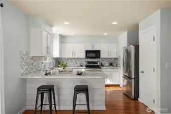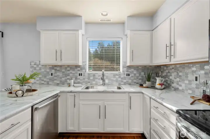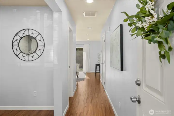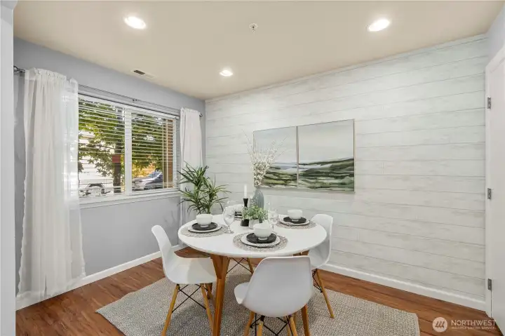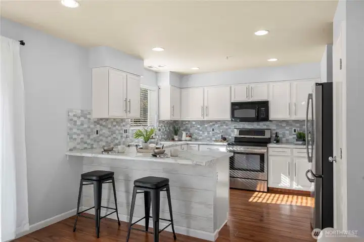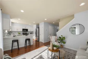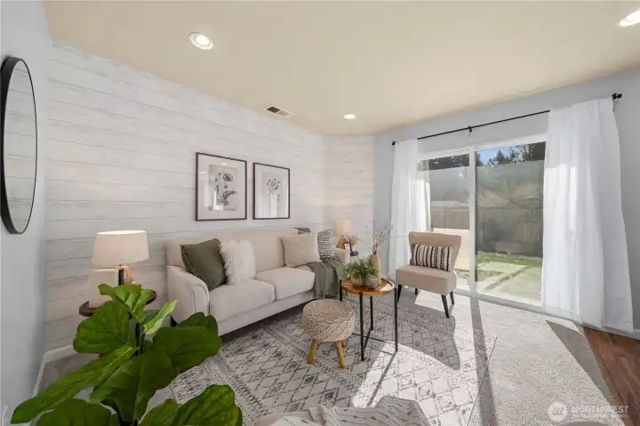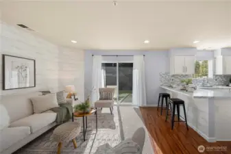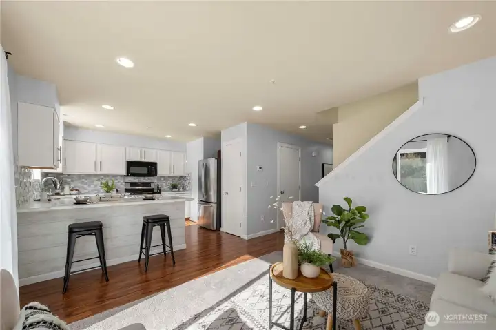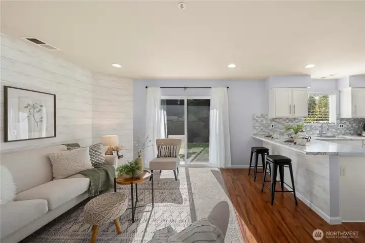 This charming and thoughtfully designed end-unit townhome offers comfort and versatility throughout. The main floor features a cozy family room off the updated kitchen, plus an additional finished room with a closet-perfect for use as a dining room, living room, office, or playroom. Upstairs you'll find 3 spacious bedrooms with 2 full baths, including a primary suite with a large walk-in closet. Enjoy the convenience of a 1-car garage with driveway parking, along with generous grassy areas beside and behind the home-providing one of the most private settings in the community. Neighborhood amenities include a play area, picnic space, and walking trails. Ideally located near shopping, dining, recreation, freeways, JBLM, Boeing and more!