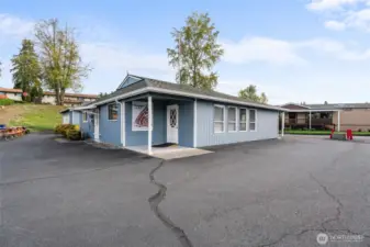 Very nice 2-bed, 2-bath home w/ den located in the quiet and desirable Brookhollow 55+ community. This home offers spacious living and dining areas, a well-appointed kitchen with instant hot water, all appliances included and newer carpet in main living area. Exterior highlights include a covered front porch, detached storage shed, attached two-car carport, and additional parking alongside the home. The property is low maintenance, and shows pride of ownership throughout. Community amenities include a clubhouse and common area for residents to enjoy. This home is move-in ready and ideal for buyers seeking a comfortable, well-maintained property in a peaceful 55+ neighborhood.