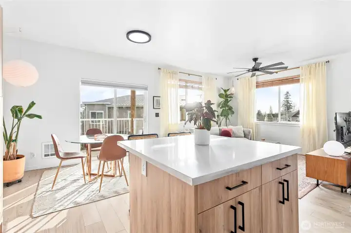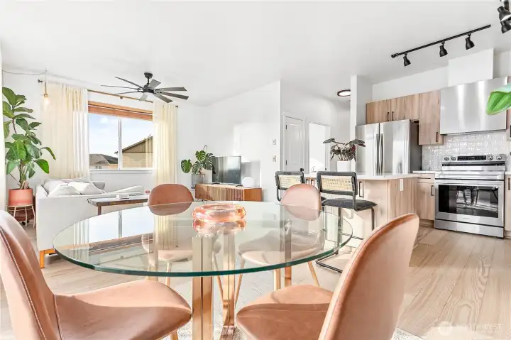 Light-filled, open interiors await you in this beautifully remodeled townhome. Move right in with this stylish new kitchen, new flooring, new millwork and fresh paint in a clean palette. Cooks will delight with the stainless steel appliances, designer tile and sleek European cabinetry. Host friends in the open dining area and step out to your private balcony and take advantage of the views. Retreat to the primary bedroom with a walk-in closet and full en-suite bath. A second nice sized bedroom is down the hall with W/D located in the condo. You'll love the community, located just minutes away from Historic Downtown Ferndale parks, trails, dining, shopping not to mention Mt. Baker for outdoor activities. Easy I-5 access for commuters, too!