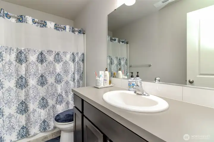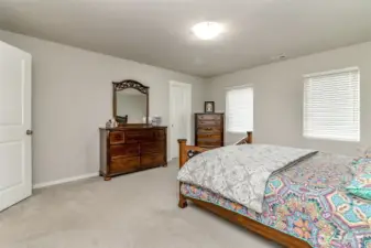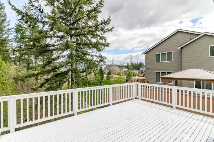 Beautiful DR Horton-built 5 bed, 2.75 bath home with stunning Mount Rainier views from the private deck! Features a main floor bedroom and ¾ bath, perfect for guests or office. Gourmet kitchen with granite counters, SS appliances, gas cooktop, large island, and open dining area leading to fenced backyard with patio and garden. Spacious living room with gas fireplace. Upstairs offers a bonus room, laundry with W/D, and a luxurious primary suite with dual walk-in closets, a soaking tub, and a separate shower. 2-car garage. Located in a quiet neighborhood with a play area.