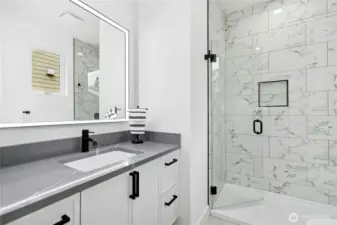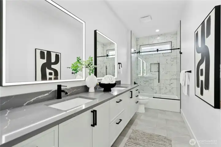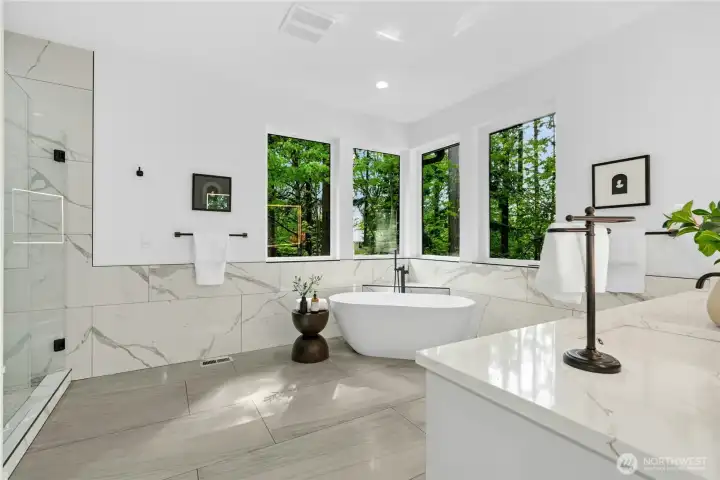 Discover a unique new contemporary home in the serene Honey Creek Highlands of Renton. Featured on a tranquil & private lot surrounded by lush, tree-filled forest w/ a fresh NW modern design. It boasts 4 beds on the upper level, along w/an expansive guest ensuite on the main level, creating an ideal fl plan. The 3,346 sf living space is filled with natural daylight. The designer kitchen incl a quartz waterfall countertop,elegant tiled backsplash, & premium JennAir app. Primary suite offers a spacious WIC & spa-like bath. In addition, a lg bonus room w/en-suite bath/closet, great for entertaining rec room or a 5th bed. Near schools, shopping, & golf, this exceptional new construction is waiting to become your dream home! *Appraised at $1.85M