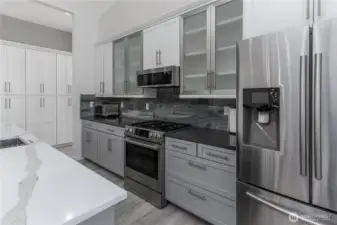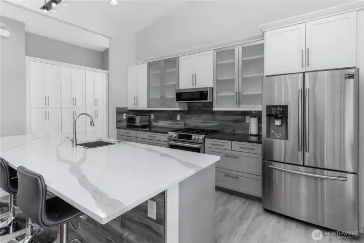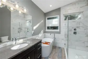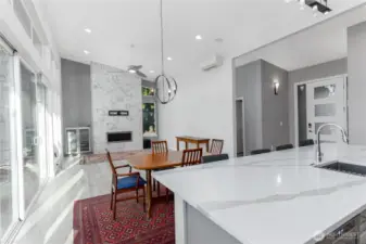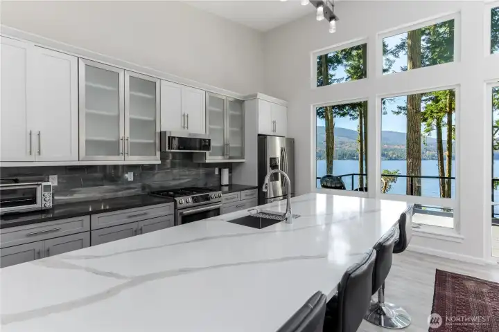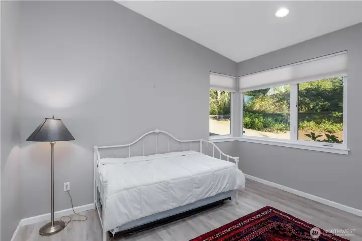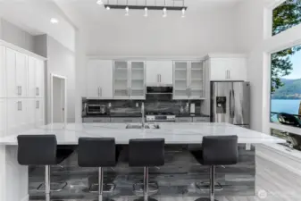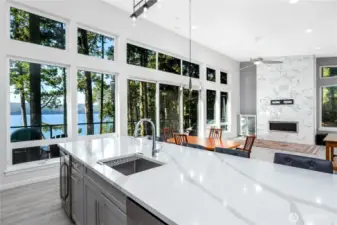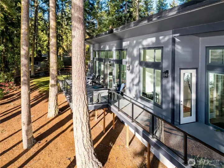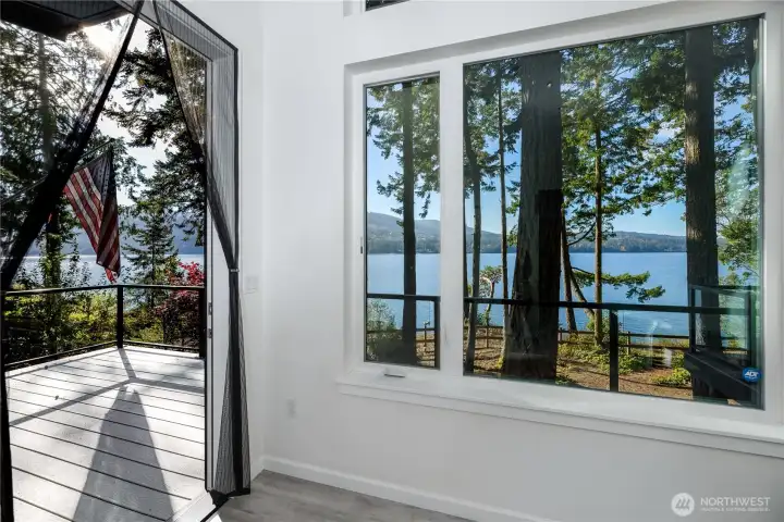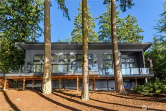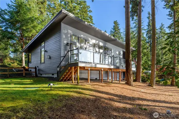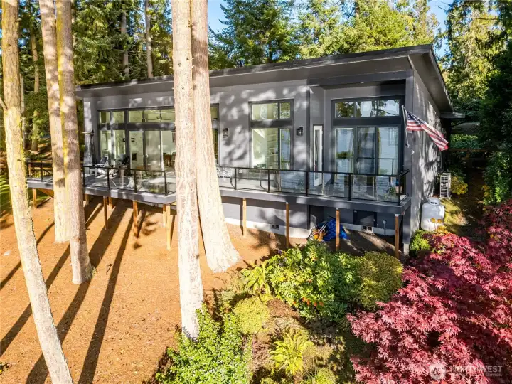 Absolutely stunning contemporary style home right on Sequim Bay! Metal roof, quartz counters, LVP flooring, ductless heat pumps, stainless steel appliances, etc. Modern kitchen is gorgeous w/huge Quartz Island, gorgeous custom lighting, wine fridge, and Bosch 5-burner propane stove. Vaulted ceilings with floor-to-ceiling views, propane f/p and doors out to a large Trex deck to sit and enjoy the scene. Primary BR off to one end w/slider out to the deck, plus a gorgeous bathroom suite. Artist studio or den/office also w/a door out to the deck facing Sequim Bay. BR2 is on the opposite side of the house, next to the 2nd full bath. Fenced-in area along the north side for pets. A really special home on an extraordinary piece of waterfront land.