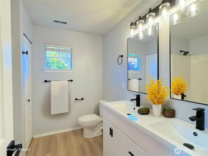 Beautifully updated home in desirable Maple Valley within the highly rated Tahoma School District! Fresh interior paint and brand-new carpet throughout create a light and inviting atmosphere. The kitchen shines with refinished cabinets and new modern light fixtures. Both bathrooms have been stylishly refreshed — the guest bath features a new vanity and LVP flooring, while the spacious primary bath boasts a new double-sink vanity and matching LVP floors. Move-in ready with thoughtful upgrades inside and out!