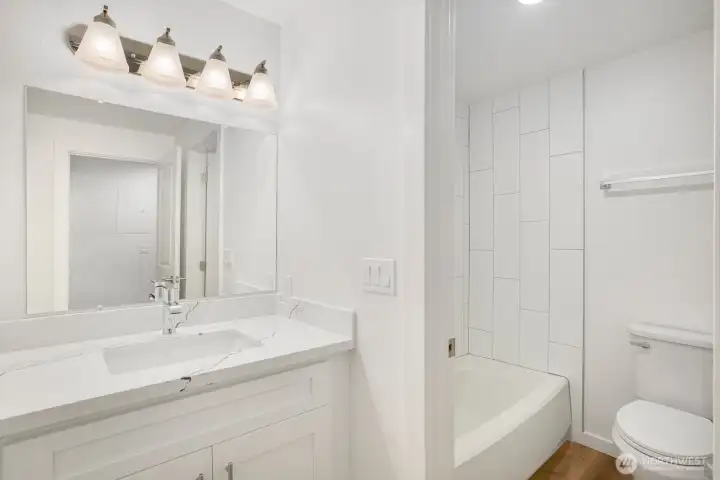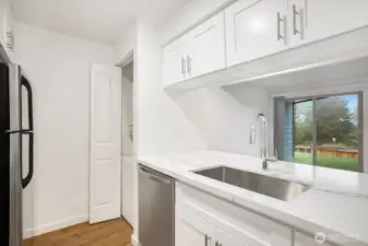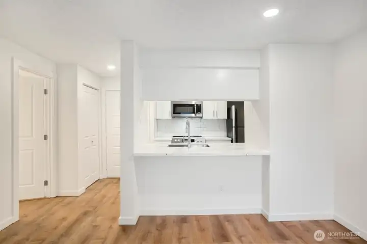 Move-in Ready condo at Valley View in Renton. This open layout condo w/ one bedroom has been beautifully updated with designer white shaker cabinets & Quartz Counters in Kitchen/Bath, all new woodwork (Trim/Doors) new LVP flooring and paint throughout. Washer/Dryer in unit and private patio overlooking the grounds. The community has recently gone through exterior updates that add to the charm. Close to SeaTac/Freeways/shopping/more
