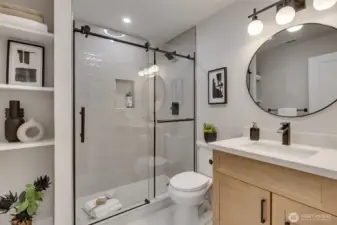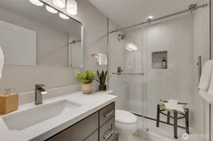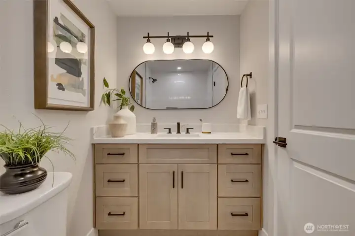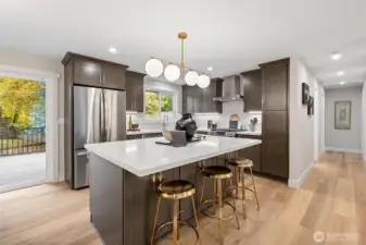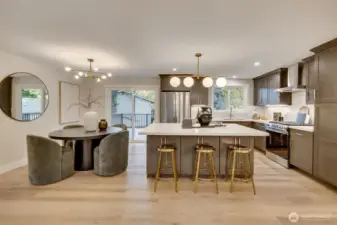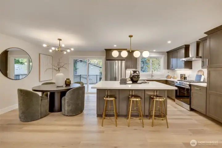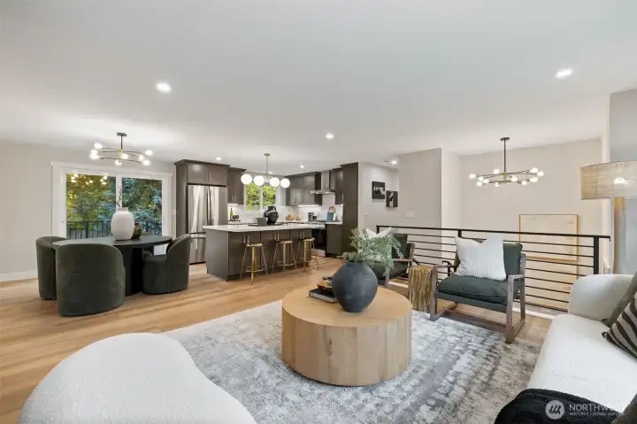 Completely remodeled modern gem on coveted Education Hill — 4 beds, 3 baths, 2,210 sq ft of stylish open-plan living w/ over 300K invested, including new roof, furnace, hot water heater, lighting, flooring, windows, & doors. Showcasing high-end finishes, a designer kitchen w/ quartz counters, oversized island, custom lighting, & stainless appliances. Spa-inspired custom baths, wide-plank flooring, beautiful mill work, & custom built modern fireplaces wired for entertainment. Enjoy seamless indoor/outdoor flow to a massive 16×20 Trex deck & fully fenced backyard oasis—perfect for entertaining. Basement bed & bath ideal for multi-generational living. Steps to Meadow Park, walking trails, highly rated schools, & vibrant Redmond amenities.