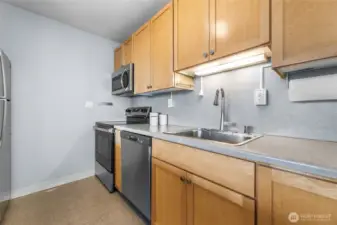 Prime location in Sky Terrace! Conveniently near the entrance, no stairs when coming from Broadway. Bright and open with windows overlooking Puget Sound, lush trees, and stunning Mount Rainier views from both the balcony and sliding window. Enjoy year-round comfort and easy access to Tacoma Light Rail, Wright Park, Stadium Thriftway, and neighborhood favorites like McMenamins and Antique Row. The rooftop patio offers 2700 sq ft of outdoor space with panoramic mountain, bay, and city views, perfect for BBQs or relaxing with friends. Includes assigned, gated parking and low HOA dues.