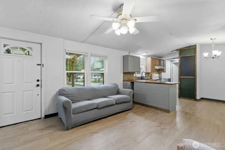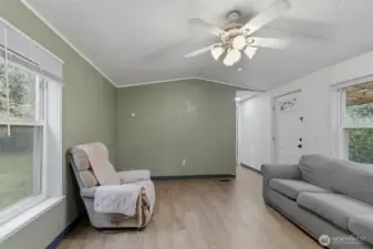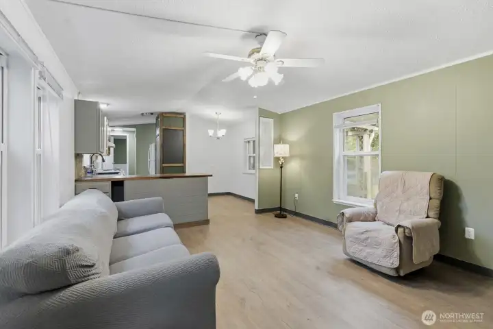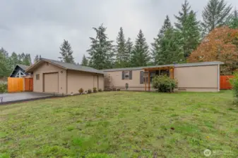 Cozy manufactured home with updated kitchen and a fenced yard with gate. Just a quick walk to the park or river, dead end street and no neighbors behind you. Detach garage and passthrough exterior storage has plenty of space and opportunities to offer. lots of yard both front and back for pets or favorite activities. Home is in great condition W LVT in the common area and plush carpet in the bedrooms. HOA - Last Bill was $96.22/mo. Dues include common area maintenance, the pool, club house & River Park/ Beach as well as a base charged water.