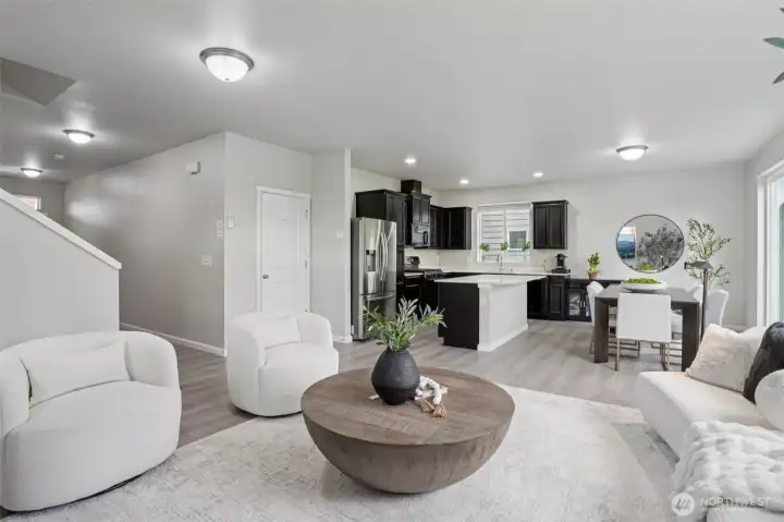 Welcome to your modern Marysville home in the highly rated Lake Stevens School District. Enjoy the quality of new construction at a more affordable price. The open-concept kitchen, featuring extra cabinetry, a large quartz island, and seamless flow into the living area, is ideal for hosting holiday dinners or weekend gatherings. Upstairs, the spacious primary suite offers a double-sink ensuite bath and a massive custom walk-in closet. Additional highlights include mini-split A/C, an upstairs laundry room, a fully fenced corner lot, and a large two-car garage - all with low $45/month HOA dues. Conveniently located just 8 minutes from Lake Stevens and downtown Marysville for shopping, dining, and fun.