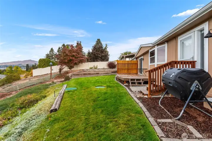 Enjoy effortless single-level living and stunning views of Wenatchee, and the Cascades in this beautifully cared-for home. Inside, you’ll find a comfortable and inviting layout featuring a large living and dining area warmed by a cozy pellet stove, plus an open-concept kitchen and family room designed to capture the views. The primary suite offers peaceful retreat space, complemented by a second bedroom and full bath. Recent updates include newer flooring throughout and a brand-new HVAC system for year-round comfort. Step outside to park-like grounds—fully fenced, meticulously landscaped, and set at the end of a quiet dead-end street for ultimate privacy. Detached garage with hobby shop included. Move-in ready and wonderfully maintained.