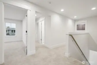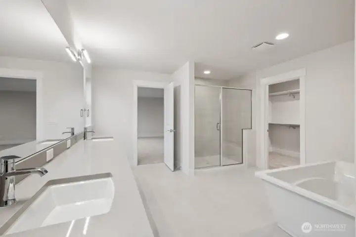 First completed homes at Shadow Creek by RM Homes! Our popular 2884 plan has a spacious & open layout. The main floor offers a light-filled great room w/ fully tiled gas FP, BR/office and 3/4 bath. Entertainer's kitchen boasts quartz counters, KitchenAid appliances, soft-close cabinets w pull-out shelves, & pantry. Huge slider leads to sun deck & backyard access. On the 2nd floor you will find a large primary bedroom w ensuite and massive walk-in closet. The spa-like bath offers extensive tile, free standing tub, & large shower. two more bedrooms, main bath, bonus room, and utility rm w extra storage. Fully fenced & landscaped yard, AC, EV charging. Convenient location w access to major hwys, shopping, dining, & schools. Ready for move in!