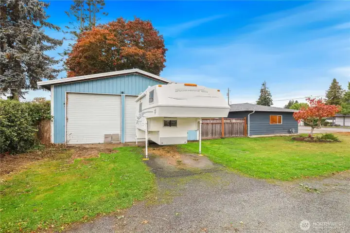 Beautifully updated & move in ready rambler on large shy 1/4 acre manicured corner lot! Huge living room with wood adornments, bay window & floor to ceiling stacked rock fireplace. Quartz kitchen with tile backsplash, matching stainless steel appliances, tons of cabinet & counter space. Down the hall find 3 generous size bedrooms & full bath with quartz vanity. Fully fenced backyard features stamped patio (July 2025) with gazebo. Full 2 car garage. Huge 20x30 shop with 2 bay doors & ample work space. Tons of driveway & side parking; bring the toys, boat & RV! Newer roof (July 2025) & recent paint inside & out. Conveniently located & only minutes to everything you need. No HOA!