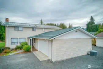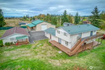 Situated on just shy of an acre, close to town but out of the city, this 4 bed 4 bath, 2760 sq ft home also boasts over 4400 sq ft of garage & shop space. Fully fenced w/ a gated entry, private & secure, the grounds include dedicated garden space, a fire pit, & room to park just about anything. The main shop, built in 2023, has 200 amp service, a dedicated office space, a separate workshop area, as well as a machine room. Compressor hookup & air lines are in place. Large carport for RV, boat, or whatever parking. The detached oversized 2 car garage has a finished studio area & its own bathroom. New metal roofs on main house & shop. Kitchen features gas stove, newer appliances, & granite counter tops. Too much to list, must see in person
