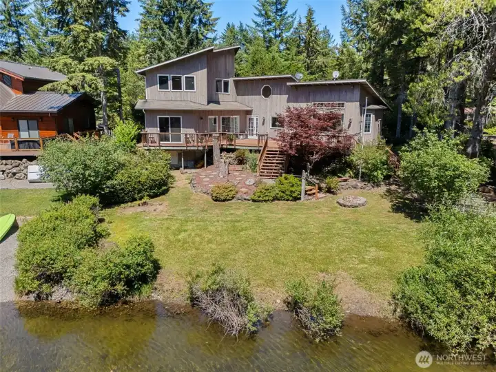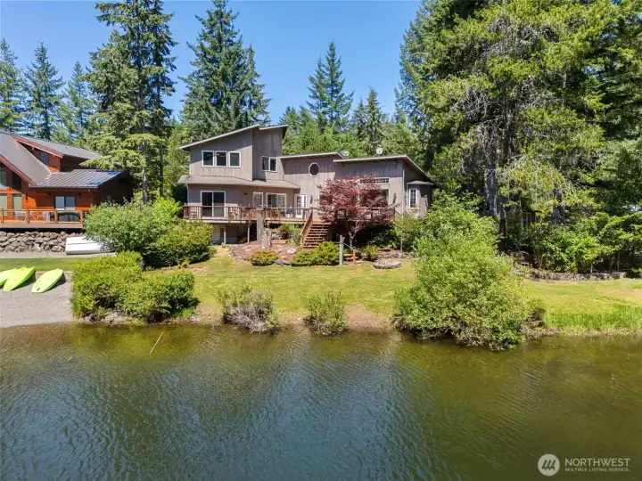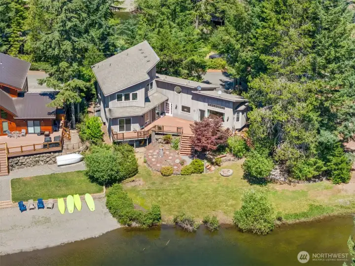 First time on the market home in beautiful Colony Surf! Home was meticulously designed by the seller to take full advantage of its beautiful location. 88 feet of lake frontage that you can enjoy from your expansive deck or from just about every room in the house. Functional kitchen is the center of the home and the office upstairs is an amazing space to work. Home is stuffed to the gills with great details including things like a generator, central vacuum, and built in speaker system. All of this while living a short walk from the lakefront community park. a slightly longer walk to the clubhouse that has its own pool, and a quick drive to the community Hood Canal Frontage. Come see this one today!