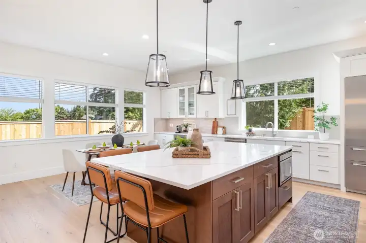 Experience 4,999 SF of exquisite, custom-crafted luxury in this masterfully designed 6 Bed, 5 Full + 2 Half Bath estate, complete with a stately Office, airy Loft & expansive Bonus Room. Tucked away on a tranquil, private street near Grass Lawn Park & acclaimed Ben Rush Elementary/Lake WA schools. Be invited into a soaring open-to-above foyer leading to refined, light-filled living spaces. The gourmet kitchen impresses with rich Huntwood cabinetry, Thermador appliances, walk-in pantry & a fully outfitted second kitchen (spice kitchen). Dual lavish primary suites, spa-inspired baths, upscale finishes, dual EV chargers, a finished garage, heated floors in all baths & many more to list. Backs to a vast meadow—privacy, beauty & grandeur!