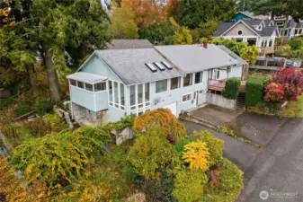 This corner lot home has views of the Capitol in Winter. The perfect home to make your own with some TLC. Great layout with a wood stove at entry & large living room with an attached two level sunroom that feels like a great spot for a hot tub or cold plunge. The kitchen is ready for your customization and has a slider to a covered patio with a green house. Main level has 3 bedrooms + full bath. Lower level has lots of storage, utility room, & a great office space or turn it into a 4th bedroom. Garage has a great shop space! 2 driveways to fit around 10 cars including RV or boat parking. Close to DT Olympia, I-5, Cafe, Madison Scenic Park and Rainbow Rails. Appraised in Oct for $525,000.