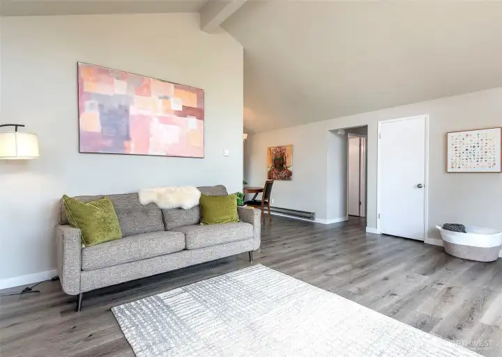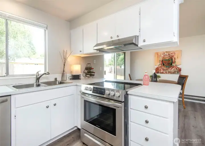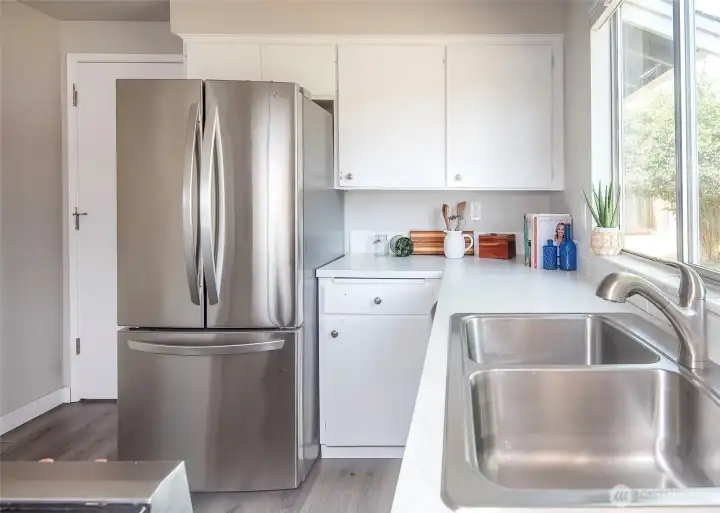 Tucked at the end of a quiet cul-de-sac, this single-level 3-bed, 1.75-bath home features vaulted ceilings, light-filled rooms with huge windows, and luxury vinyl plank flooring throughout (no carpet). Enjoy a spacious 10,000+ sq ft yard, stainless steel appliances, and a 2-car garage. Prime location near Paine Field with an easy commute to any location. Move-in ready and turnkey—all appliances included.