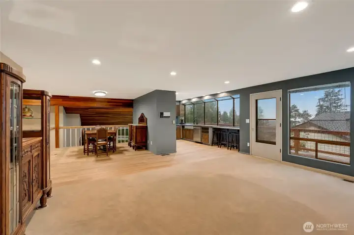Discover this spacious 3,274 sq. ft. home on a beautifully landscaped third-acre lot perched above Mukilteo Blvd. Featuring 3 bedrooms plus a large bonus room in the basement, this home offers plenty of space for work, play, or relaxation. The refreshed main living areas provide 2 separate living rooms, one w/ fireplace & dining room. The remodeled kitchen offers an abundance of natural light, refinished cabinets, SS apps, LVP flooring & can lighting. The large primary bedroom boasts vaulted ceilings, en suite bath & private deck. Enjoy serene outdoor spaces, w/ sound & island views, perfect for entertaining. Ample storage & thoughtful design, this home is a rare find in a prime location. Two 220 amp services in the 3 car garage.