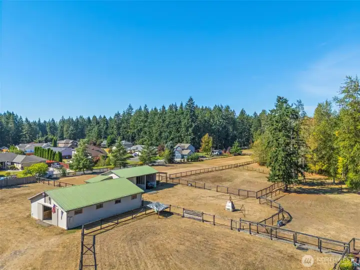 Equestrian Estate on over 5.5 acres on the Spanaway/Graham border. For over 40 years, this turn-key property has been home to a thriving thoroughbred business & now offers endless opportunity for its next chapter. The custom 3 bed, 2 bath home exudes warmth & comfort. Soaring ceilings w/ a main floor primary suite & sunlit loft/rec room. 2 barns—one w/ 8 stalls, hayloft & hot/cold wash, the other w/ a tack room, foaling stall & 2 covered areas for trailers, RVs, or equipment. Fully fenced w/ 4 paddocks and wooded area w/ private riding trails & seasonal creek right on the property. Perfectly designed for both function & comfort, this property is ready for training, boarding, starting your own equestrian venture or to just simply enjoy.