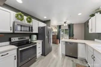 Thoughtfully updated and many major updates already completed= Affordable living with peace of mind from day one. 3 bedrooms, 2½ bathrooms, 2-car garage with longer driveway, low-maintenance landscaping, extended patio for entertaining, and fully fenced backyard make this an ideal choice for first-time homeowners too. Modern kitchen features SS appliances & designer finishes. Bathrooms updated with new toilets, vanities, fixtures, & mirrored cabinets. Durable and attractive LVP flooring and high-end interior paint throughout. Updated systems include: Heat pump/Furnace (2023), Ductwork (2023), Roof (2019), Crawlspace door replaced (2019), Hot water heater (2025). All appliances stay including garage freezer. Truly move-in ready - Must see!