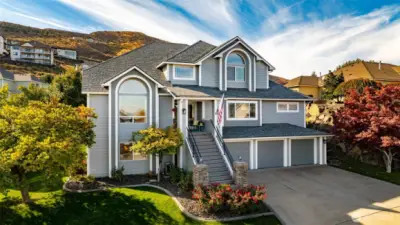 Beautiful South Richland home on a quiet cul-de-sac with 4,714 sq. ft. of versatile living space. Entry opens to vaulted ceilings, hardwood floors, and new carpet, leading to a formal living/dining area and updated kitchen. Main-level primary suite offers a walk-in closet and spa-like bath. Upstairs features 4 bedrooms, 2 full baths., laundry, and a vaulted bonus room with river views that could serve as a 5th bedroom, office, or flex space. Basement includes a full apartment with kitchen, family room, bedroom, and separate garage access -- ideal for multi-generational living or potential rental income. Climatized unfinished garage/workshop with extra laundry is perfect for hobbies, gym, or storage. Backyard is a private retreat.