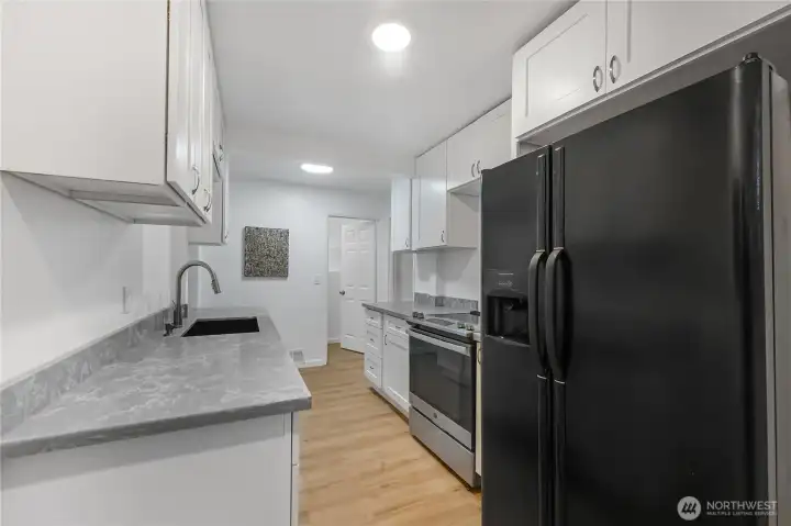 Here it is! Excellent opportunity to own this 3br 1 bth home that has just been REFRESHED with new kitchen counter tops and cabinets, new bathroom vanity and mirror, new carpet throughout, new paint inside and out and more. NEW furnace, AC, along with Efficient floor plan that is nice and bright. The spacious lot comes with a fenced backyard and room to turn into your own paradise for personal enjoyment and entertaining all year long. There is room for a future garage/shop or carport that has been graveled and has room for multiple cars including an RV.