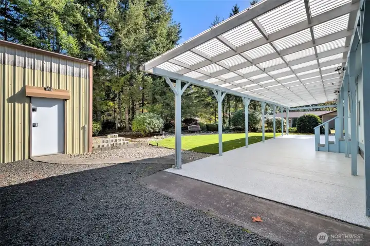 What a LOVELY home! This place has been so well-maintained over the years, you won't believe it. Gorgeous landscaping, the delightful fully-covered back patio has been a favorite hang-out spot for friends and family for decades. And the SHOP! Massive 864sf metal building, with a heated 10x30 office/workshop/etc. on one side with water-fully finished (could be an office? Work-out room?). Lots of off-street parking, including a HUGE R/V carport with power and a septic dump. Primary bathroom has a Simply Safe jetted step-in tub, plus a separate shower. The 2nd bedroom already has a Murphy bed, so it can double as a guest room or office! Heat pump offers affordable heating PLUS air-conditioning in the summer. This one has it all!