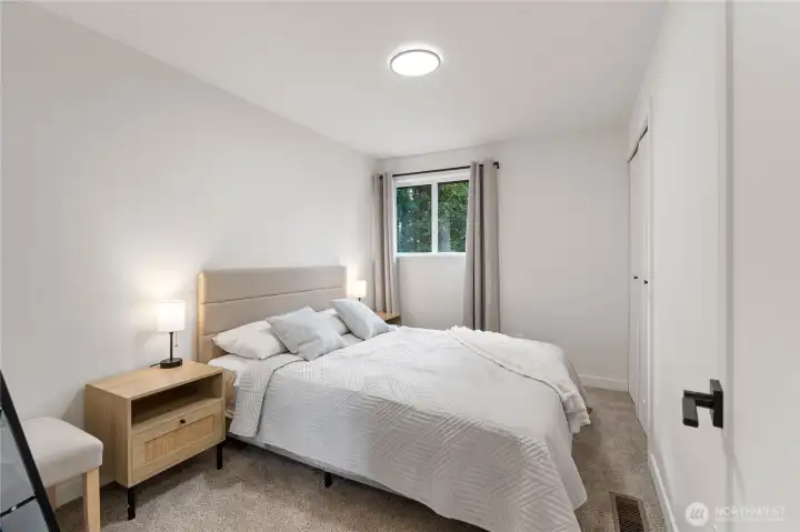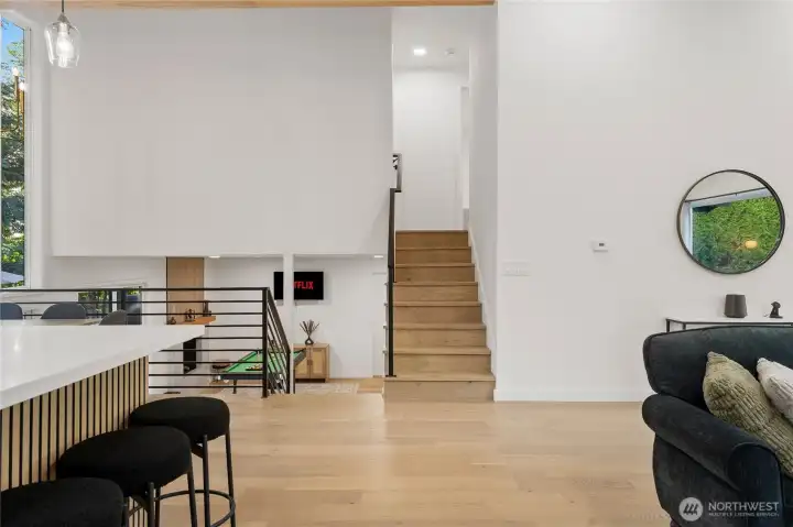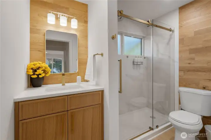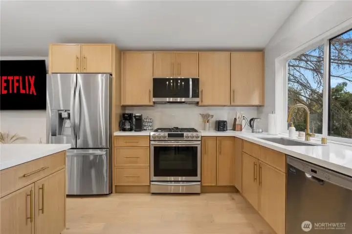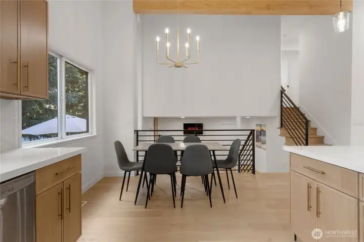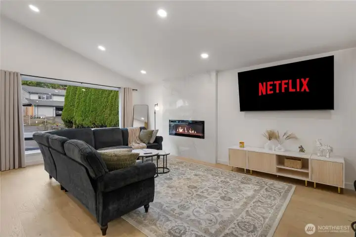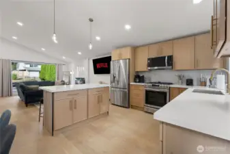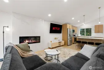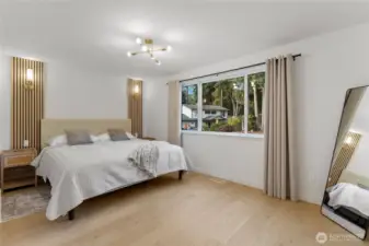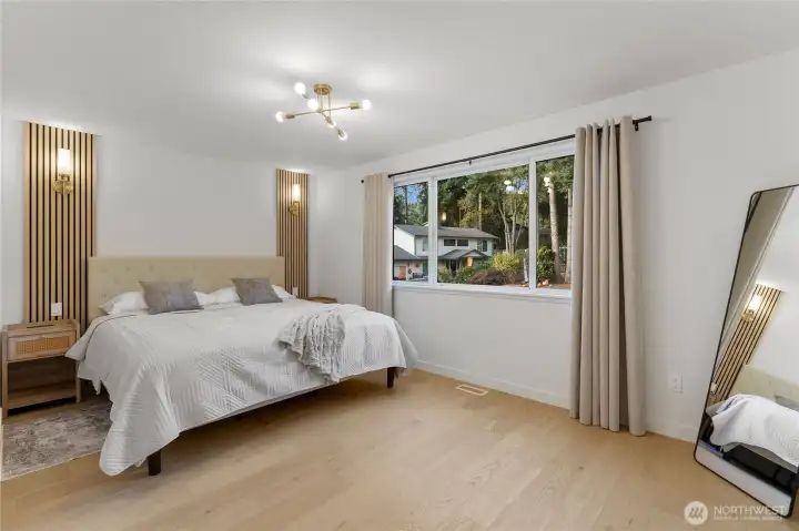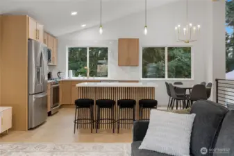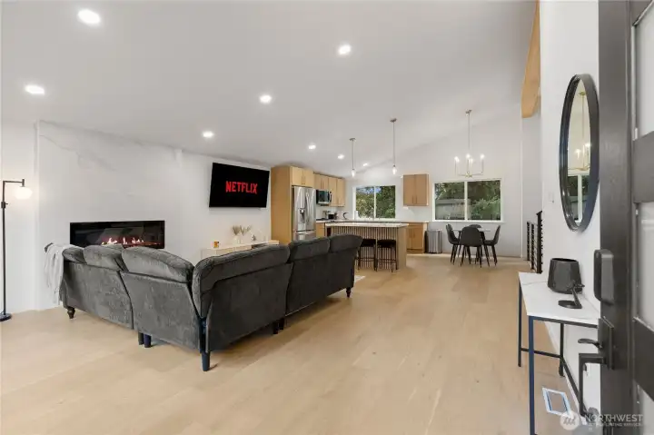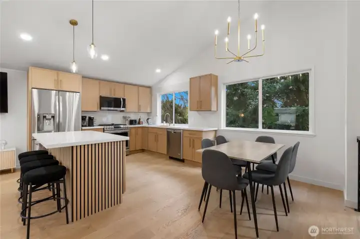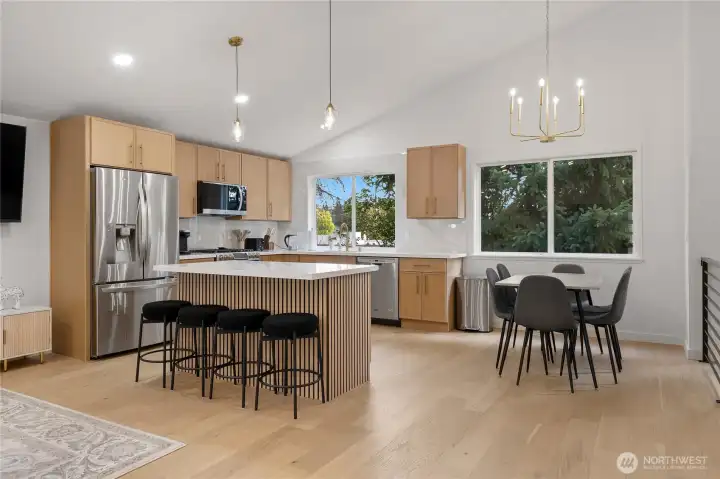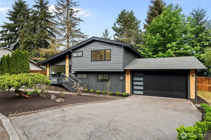 Tucked in a quiet cul-de-sac in Kirkland’s coveted Finn Hill/North Juanita neighborhood - NOW FULLY FURNISHED, LICENCED & OPERATING ON AIRBNB home can be sold turnkey w/ all furnishings & bookings included, or move right in w/ no furniture shopping needed! This Tri-level home blends comfort, style, & functionality. Bright, open layout w/ Vaulted Ceilings & designer finishes. The chef’s kitchen showcases Slim Shaker cabinets, quartz counters, pendant lighting & newer SS appliances. Engineered Hardwood & LVP floors flow throughout, w/ carpet in select bedrooms. Primary Suite offers a serene En-Suite w/ designer tile, new vanity & tub. Lower level features a spacious family room, 4th bedroom, & ¾ bath. Large yard, RV parking & Oversized Garage