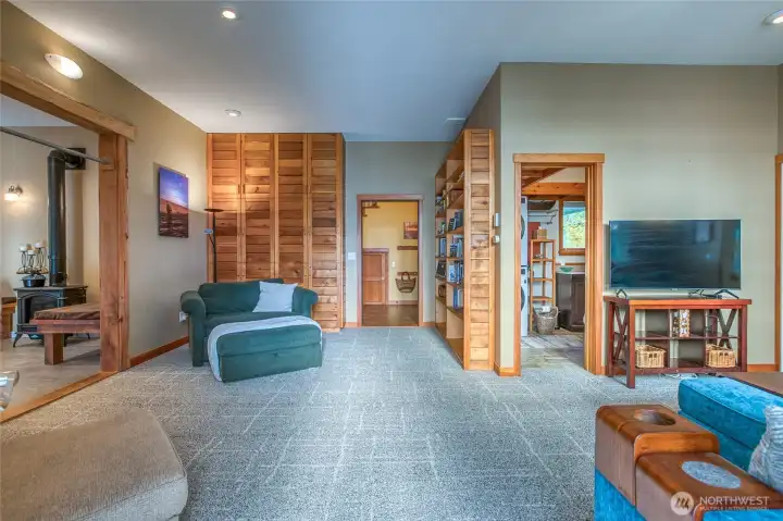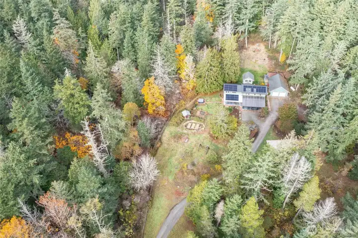 Beautifully maintained 3bd/2ba home on 5 private acres near Victorian Valley. A thoughtful 2017 addition expanded the home w/ an open-concept kitchen perfect for entertaining, + a spacious primary bd w/ walk-in closets. The expansive sunroom, w/ floor-to-ceiling glass panels & sliding roof vents, offers a versatile flex space. This sunny property includes over 3 deer-fenced ac w/ established gardens, fruit trees, chicken coop, & sports court. Unwind in the hot tub under the stars. 12.75 kW solar array w/ battery backup, EV charging station, private well, 6bd septic & detached 2-car garage w/ storage & shop space. Adjacent to SJ Preservation Trust trail & minutes from Killebrew Lake & ferry—this property offers both serenity & convenience.