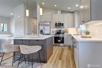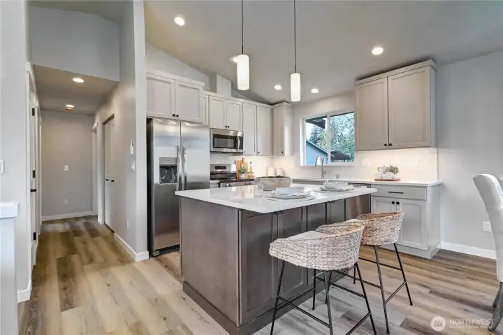 LAKEFRONT LIVING! NEW WATERFRONT HOME situated lakeside in the gated Rainbow Springs Community. A PNW gem with access to a community riverfront park w/picturesque sandy beach, lake trails, and other private park amenities. This new home boasts designer finishes and upgrades throughout! Gourmet kitchen, dining, and living spaces w/ample lighting from surrounding windows, peaceful views of Rainbow Springs Lake. Enjoy SS appliances, quartz counters, quality cabinetry, beautiful/durable Luxury Vinyl Plank Flooring throughout, designer carpet in 3 bedrooms, plus a bonus room. Lakeside access to the HUGE backyard. The spacious primary suite features a stunning tile shower, walk-in closet, and more waterfront views! A MUST-SEE QUALITY HOME!