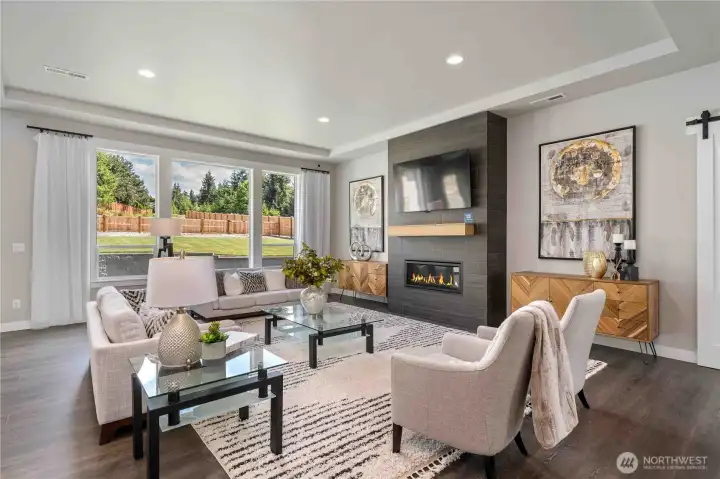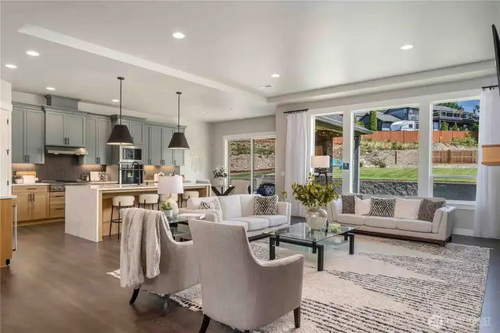 Introducing THE CASCADE by GARRETTE HOMES – now UNDER CONSTRUCTION on over an acre of land in a GOLF COURSE COMMUNITY! This stunning home features a 12-foot sliding door off the great room, creating a seamless indoor-outdoor connection to a covered patio with an outdoor fireplace – perfect for entertaining or enjoying watching the sunset in the backyard. The spacious kitchen includes an impressive 8-foot by 4-foot island, designed as the central gathering space in the heart of the home. The primary suite is located on the main floor and offers private access to a covered patio, a freestanding soaking tub, and dual walk-in closets. Photos for inspiration only. Actual finishes and features may vary.