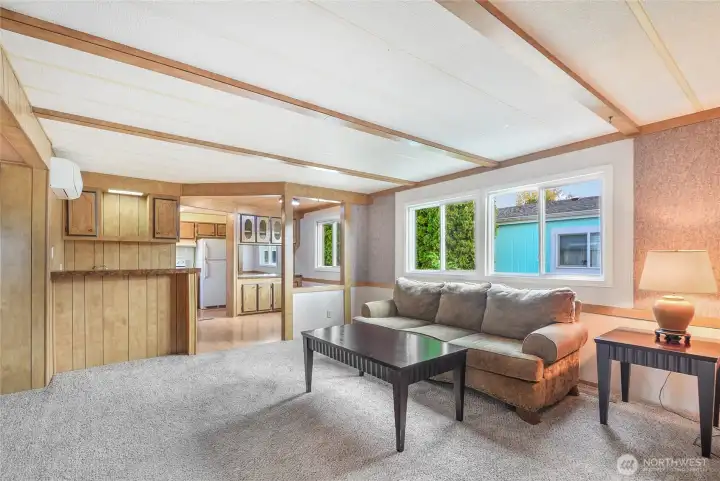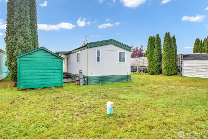 Move in ready! 55+ Community has a great one! This Super Clean 2 BDRM, 2 BA with tip out, is available NOW! Primary BDRM has its own private bathroom with new walk-in shower. Spacious kitchen! All appliances including microwave, washer/dryer. New Roof, New Windows, and Ext paint is NICE! Mini split added in living area for comfort. Mature landscaping. Shed included. Fantastic grassy area behind this home for you! Seasonal pool and clubhouse included w/ monthly events if you are interested. Pets okay, subject to some restrictions. RV parking available for very low fee. One of the lowest space rents in Snohomish County that INCLUDES sewer/water. Minutes from 1-5, located near Target-Costco. Buyer must be pre-approved by Manager to purchase.