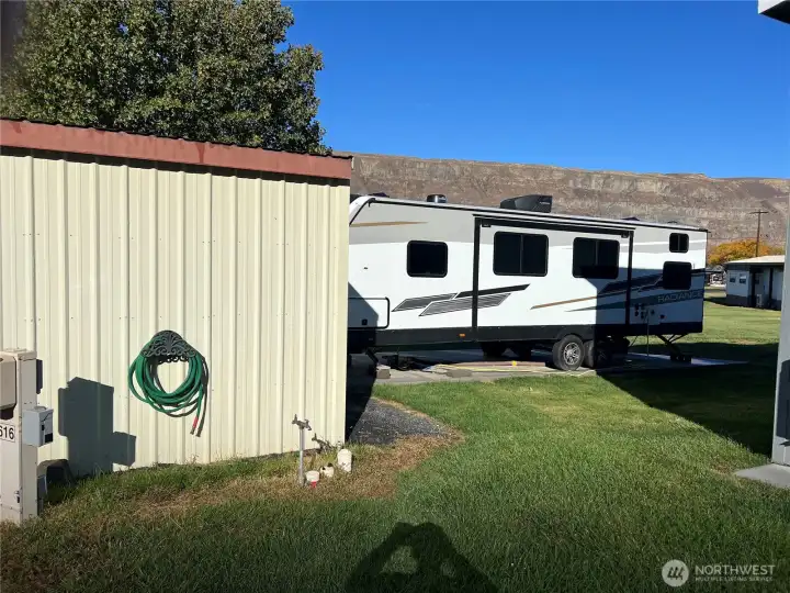 Discover affordable lake-area living in Coulee City! This 2,396 sq. ft. lot is ready for your getaway or full-time living. HOA includes water, sewer, electricity, garbage, and lawn maintenance for easy ownership. A trailer currently sits on the property and can be sold separately. The metal shed has power, washer/dryer and new hot water heater. Perfect for a low-maintenance escape near Banks Lake—enjoy nearby boating, fishing, and sunshine in beautiful North Grant County. This homesite is park ready for you to add a manufacture home or trailer.