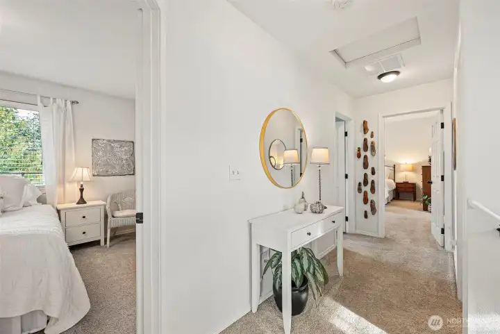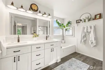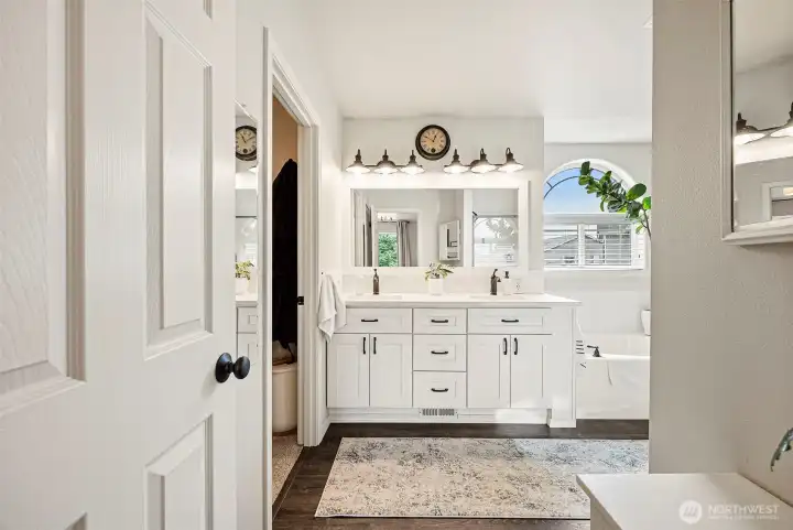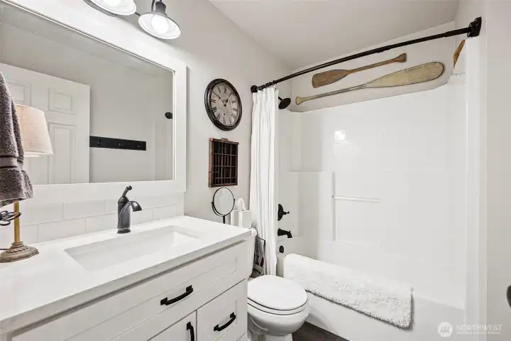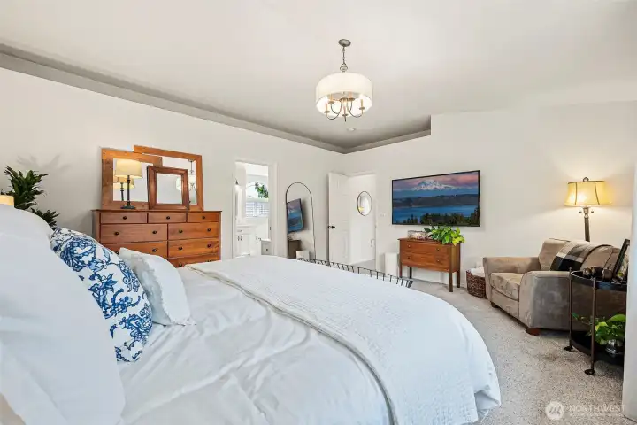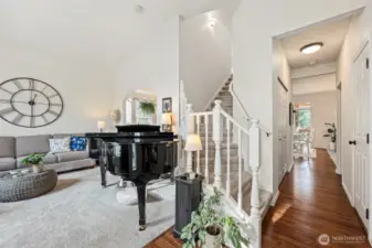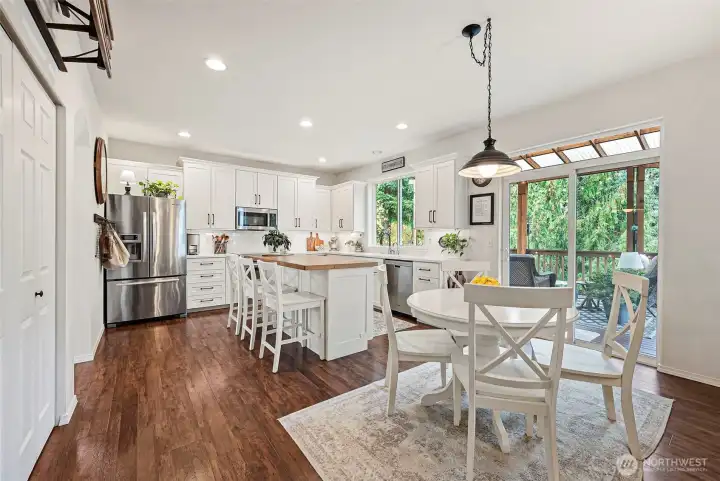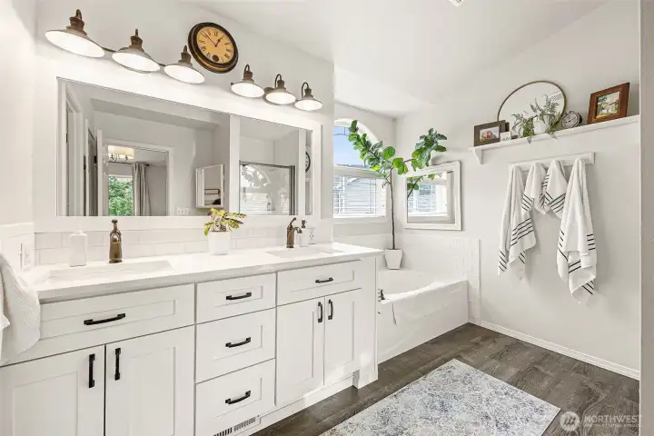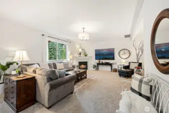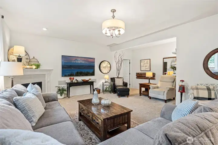 Welcome to this beautifully updated one owner home in a prime and private location! 4beds, 2.5 bath and an oversized 3 car garage. Main Level features Dual Living spaces w/a cozy gas fireplace, Stunning Kitchen with updated cabinets and quartz counters, breakfast nook, formal Dining room, LVP flooring and a versatile Bedroom. Upstairs, 3 beds including a spacious Primary bed with a 5pc Deluxe Bath and large closet. Enjoy a newer roof(2021), 95%+ efficient furnace with A/C, 50-gallon water heater and tons of upgrades. The expansive covered deck backs to a serene greenbelt—offering year-round comfort perfect for entertaining. Sprinkler system and generator hookup! Close to Puyallup Schools, parks, Shopping and JBLM. Move in ready - Must see!