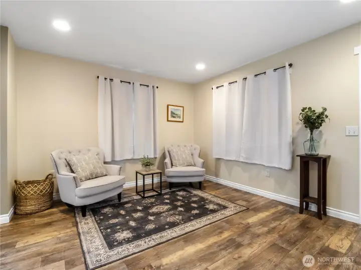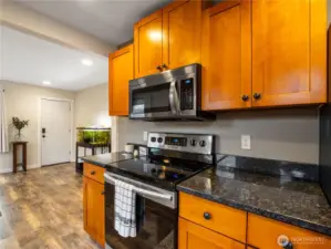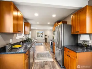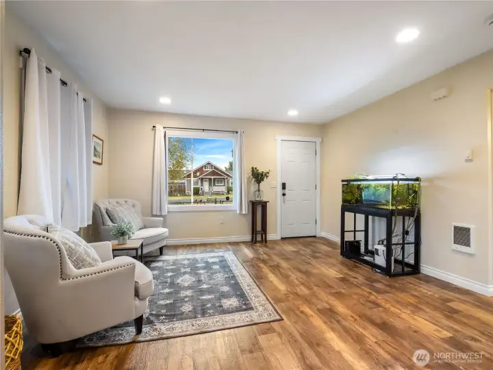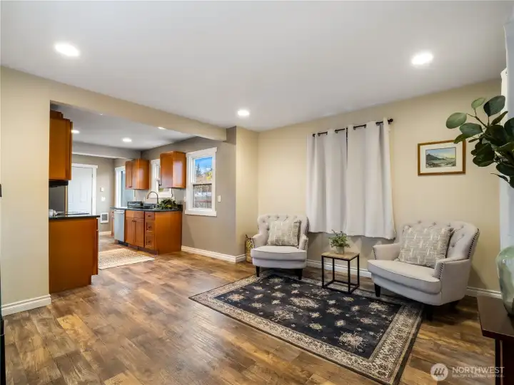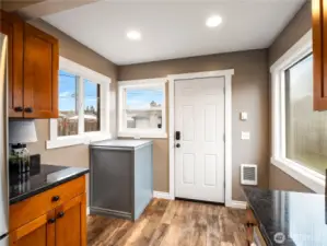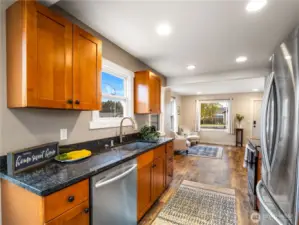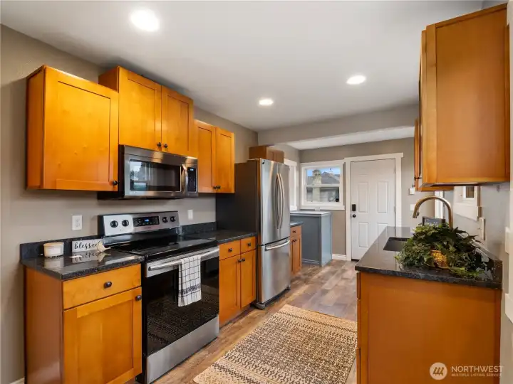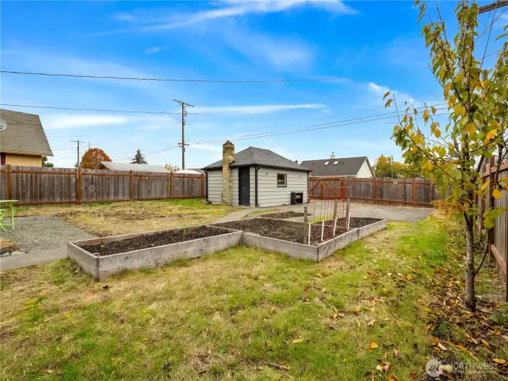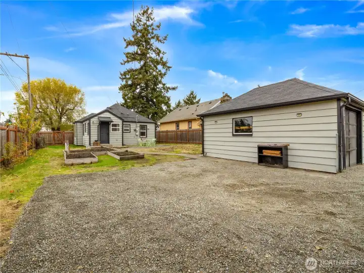 This charming 2-bedroom, 1-bath bungalow sits on a desirable corner lot near the Tacoma Mall. The open kitchen flows into the living room and features a cozy breakfast nook. Just off the main living area are two bedrooms and a full bath. The home includes granite countertops, stainless steel appliances, and newer LVP flooring, along with fresh interior paint throughout. A washer/dryer combo is also included. The private backyard offers a patio area, raised garden beds, fruit trees, and full cedar fencing for added privacy. Gated alley access leads to a single-car garage. Conveniently located just minutes from freeways, shopping, and schools. Additional updates include a newer roof, water heater, and electrical.