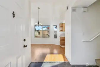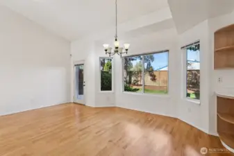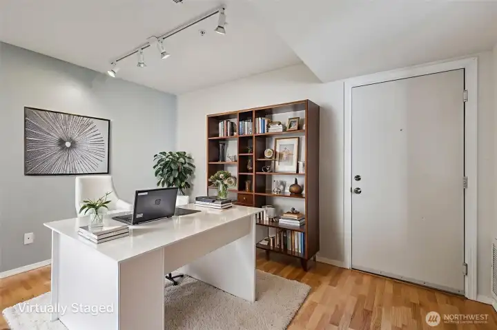 This spacious two-bedroom, 2.5-bath townhome PLUS an office and attached two-car garage offers the perfect blend of comfort and style. Sunlight pours through large windows, highlighting vaulted ceilings, gleaming hardwood floors, and the open kitchen, while a cozy gas fireplace invites you to relax on chilly evenings. Enjoy dining or morning coffee while overlooking the beautifully landscaped backyard. Both bedrooms are generously sized and feature their own baths, and the garage even includes a handy workshop. Tucked away on a private end street, the home is just minutes from shopping, dining, and transit. A well-managed HOA, with rental and pet-friendly policies, makes this a wonderful community and a place you will be proud to call home.