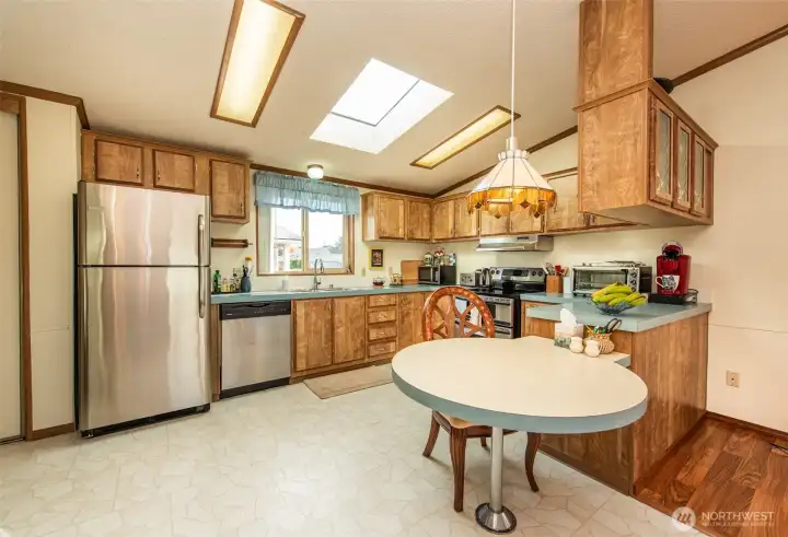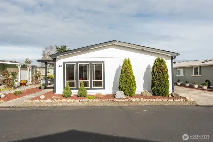Enjoy easy in-town living at West Alder Estates, one of Sequim’s most walkable 55+ communities! This well-maintained 1,614 sq ft home features an open layout with updated laminate flooring, vaulted ceilings, and skylights. Offers 3 bedrooms, 2 baths, a spacious kitchen, and a large covered patio for outdoor relaxation. Fresh exterior paint adds great curb appeal, and the low-maintenance yard means more time to enjoy the town. Located just blocks from shopping, dining, medical services, and parks—this home truly combines comfort, convenience, and walkability! This home borders the alley, providing added convenience and parking.