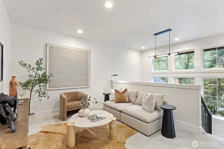 A striking brand new custom estate in Redmond, just 10 minutes from Microsoft and minutes more to Downtown Bellevue and Seattle. Set on 2.5 private acres, this modern masterpiece blends luxury and livability with a main-floor primary suite, chef’s kitchen with full prep kitchen, and soaring 20’ ceilings that fill the home with natural light. The spa-inspired primary bath features a skylit rain shower, freestanding tub, and exquisite finishes. A cedar wine room and designer finishes add warmth and sophistication throughout. The 4-car garage offers an oversized bay for a boat or workshop, plus RV parking. A private cottage with its own garage and patio provides exceptional flexibility for guests, multi-generational living, or extended stays.